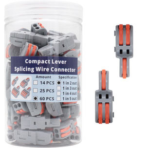 Tool-free, reusable 5-port lever nut for 28-12 AWG. Rated 32 A / 450 V, –40 °C to +105 °C, UL 486C listed. Split one feed into four circuits in seconds—perfect for LED lighting runs, RV mods, and control panels at a price that undercuts leading WAGO® pieces.