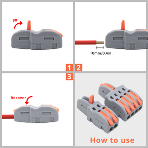Fan-out one supply line into four loads in three seconds. Lift the orange lever, push the conductor, snap shut—no twisting, no tools. Each connector is factory-tested to 32 A @ 450 V AC, matching WAGO-grade performance at a lower cost.