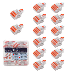 - Compact lever splicing wire connectors can be reused. When not needed, push the handle upwards, remove the wires, and continue using the connector next time.