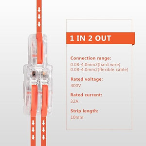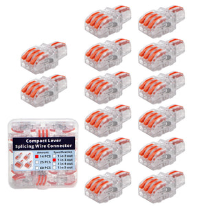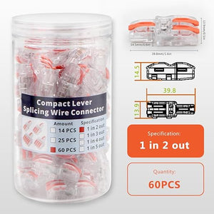60 Pcs in Buckets of Electrical Splicing Connectors,1 in 2 Out Splicing Connector with Levers Transparent Shell with Orange Handle,Wire Splicing Connectors